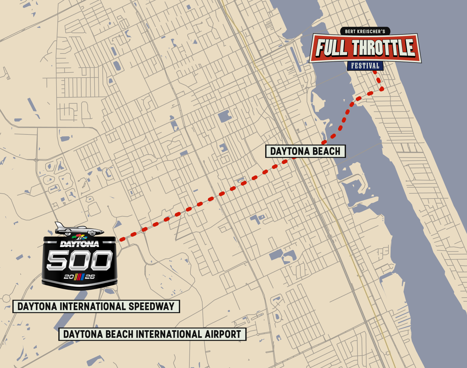 Full Throttle Festival will take place at the Ocean Center Convention Center, 101 N Atlantic Ave., Daytona Beach, FL 32118. Located just minutes from the famed Daytona International Speedway, this venue puts you in the heart of the action, making it the perfect pre-race party destination on Saturday night.